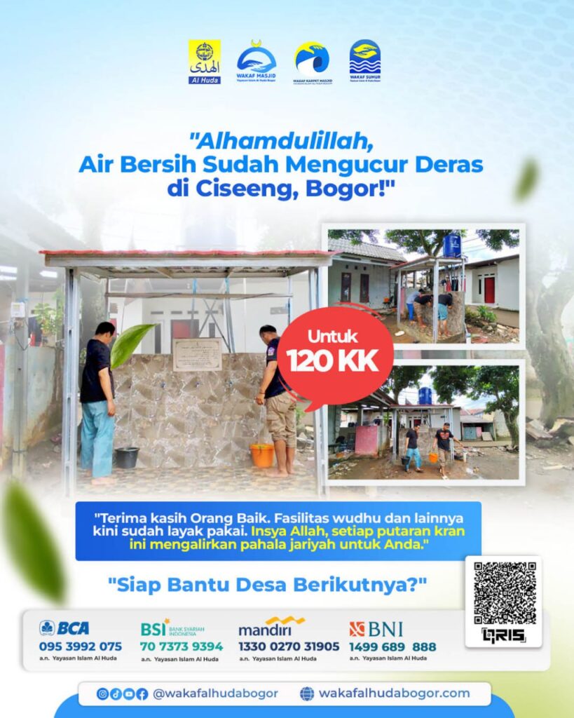 Alhamdulillah, setelah sekian waktu menanti, air bersih kini benar-benar mengucur deras di Ciseeng, Bogor. Kran-kran yang sebelumnya hanya menjadi harapan, hari ini telah mengalirkan kehidupan.